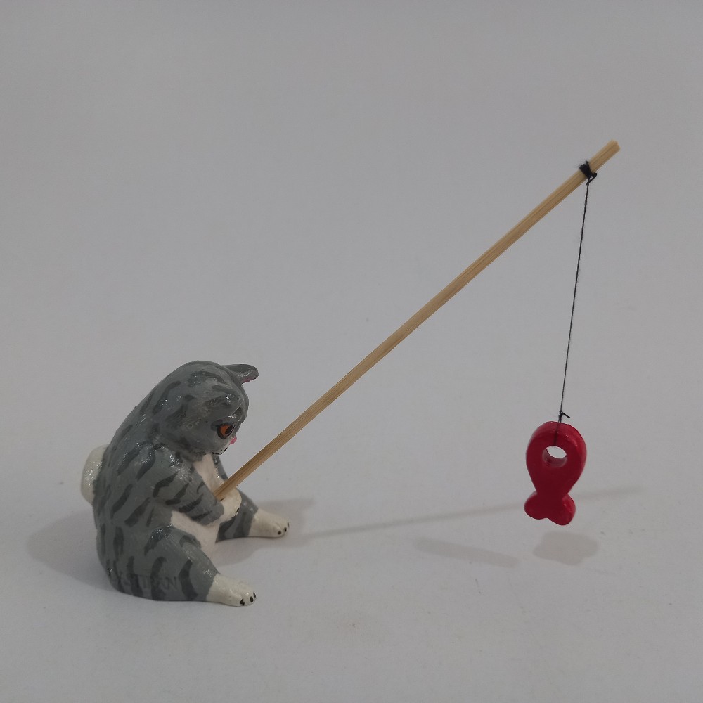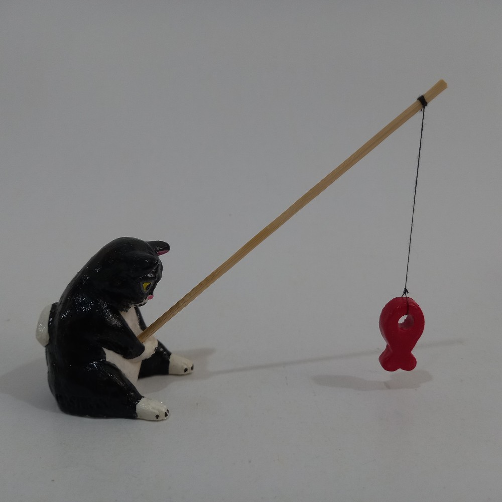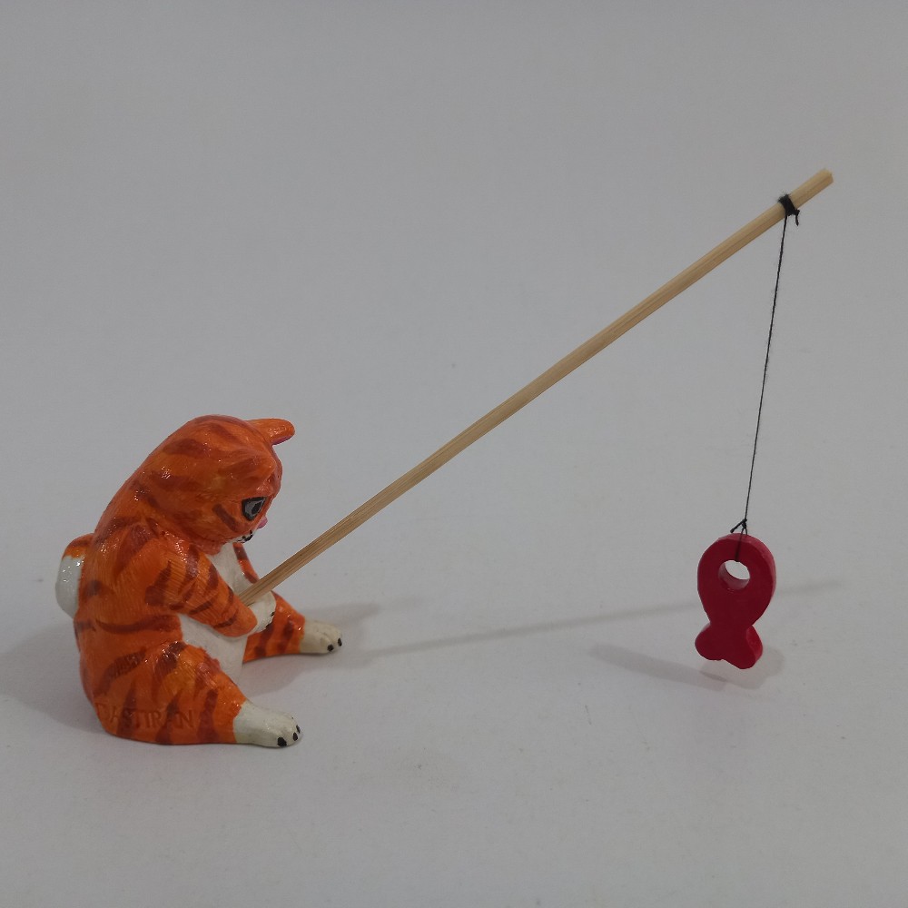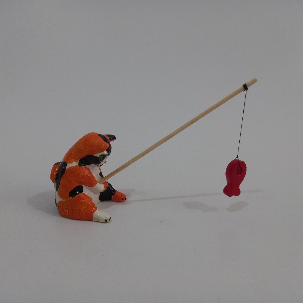 گربه جذاب و کیوت در حال گرفتن ماهی که میتونید روی میز به عنوان دکوری و یا روی لبه آکواریوم و … استفاده کنید