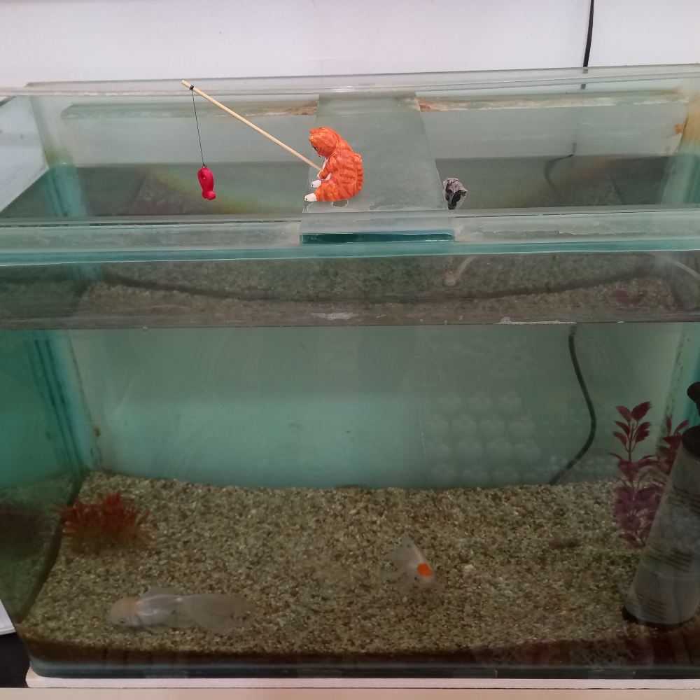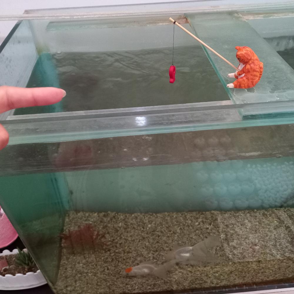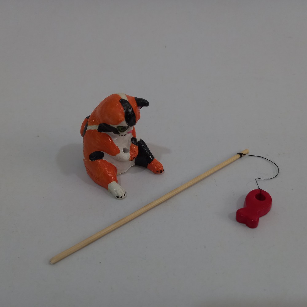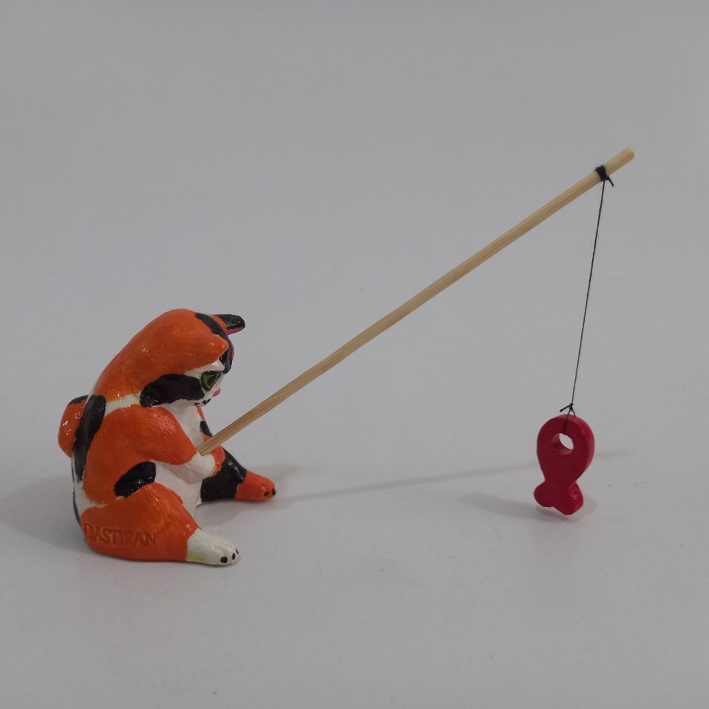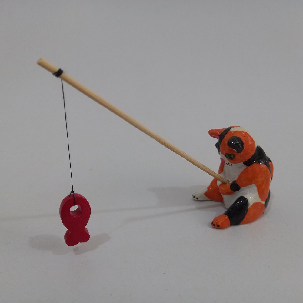 گربه جذاب و کیوت در حال گرفتن ماهی که میتونید روی میز به عنوان دکوری و یا روی لبه آکواریوم و … استفاده کنید